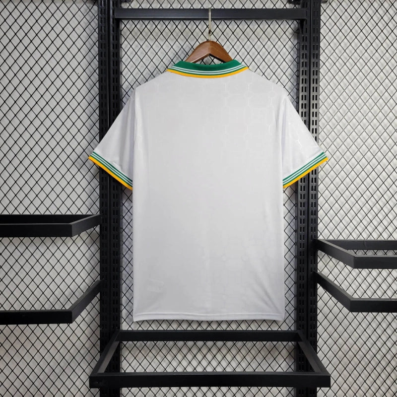 Oficiální venkovní dres AS Roma pro sezónu 2025. Bílý s zeleno-žlutými detaily a klasickým polo límečkem. Kombinace elegance a historie římského klubu ve vintage stylu.