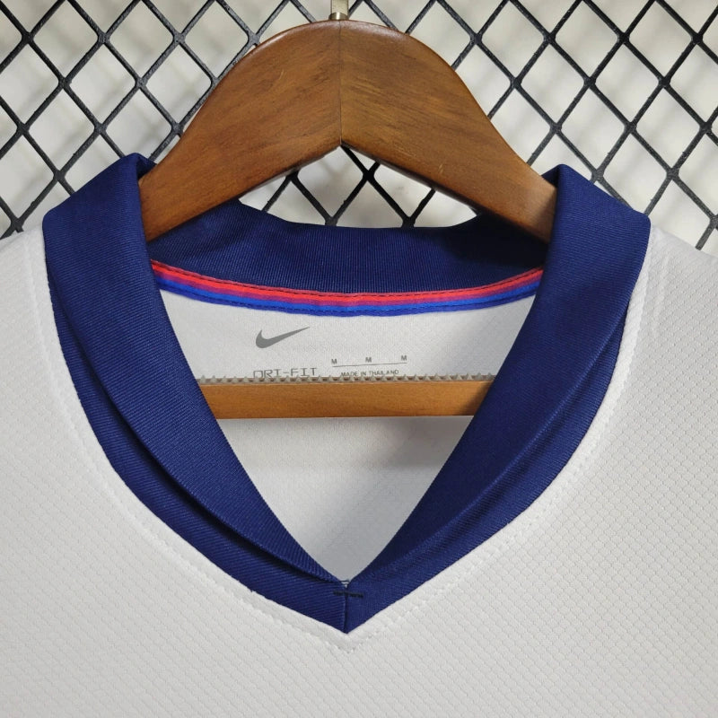Domácí dres Anglie pro rok 2024 má čistý, klasický vzhled s moderními barevnými akcenty. Bílá základna v kombinaci s tmavě modrými a červenými prvky vytváří elegantní, nadčasový vzhled. Prodyšný materiál zaručuje pohodlí a přiléhavý střih zajišťuje plnou volnost pohybu. Ideální jak pro fandění, tak pro každodenní nošení.