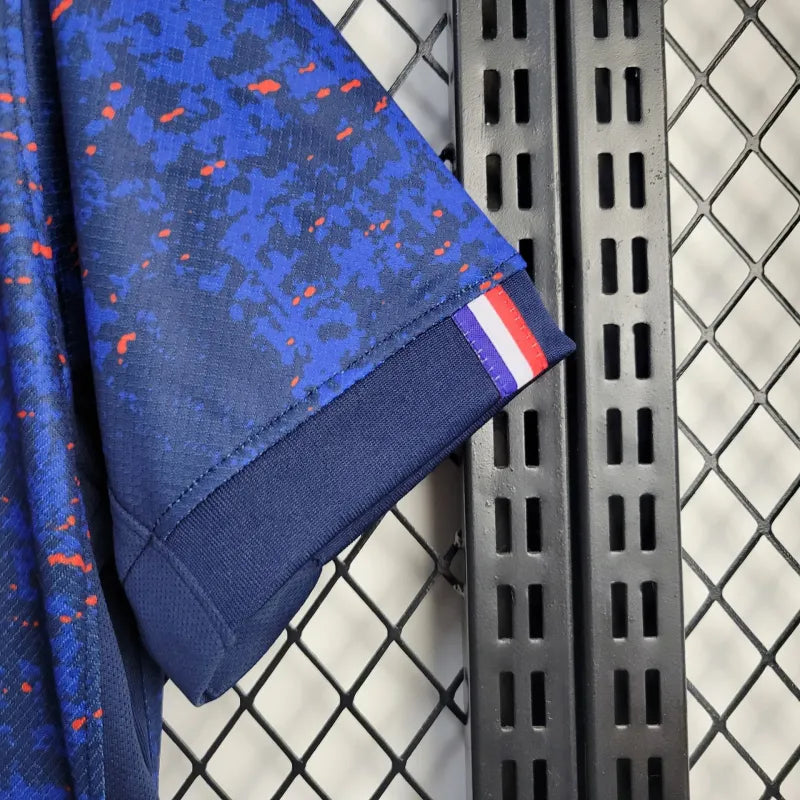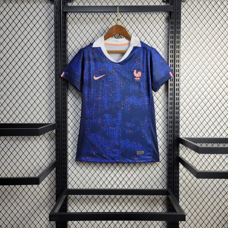 Oficiální dres francouzské reprezentace pro sezónu 2025. Jedinečný design v odstínech tmavě modré a modré s jemnými růžovo-zlatými detaily. Vyrobeno společností Nike – kombinuje eleganci a sílu „Les Bleus“.