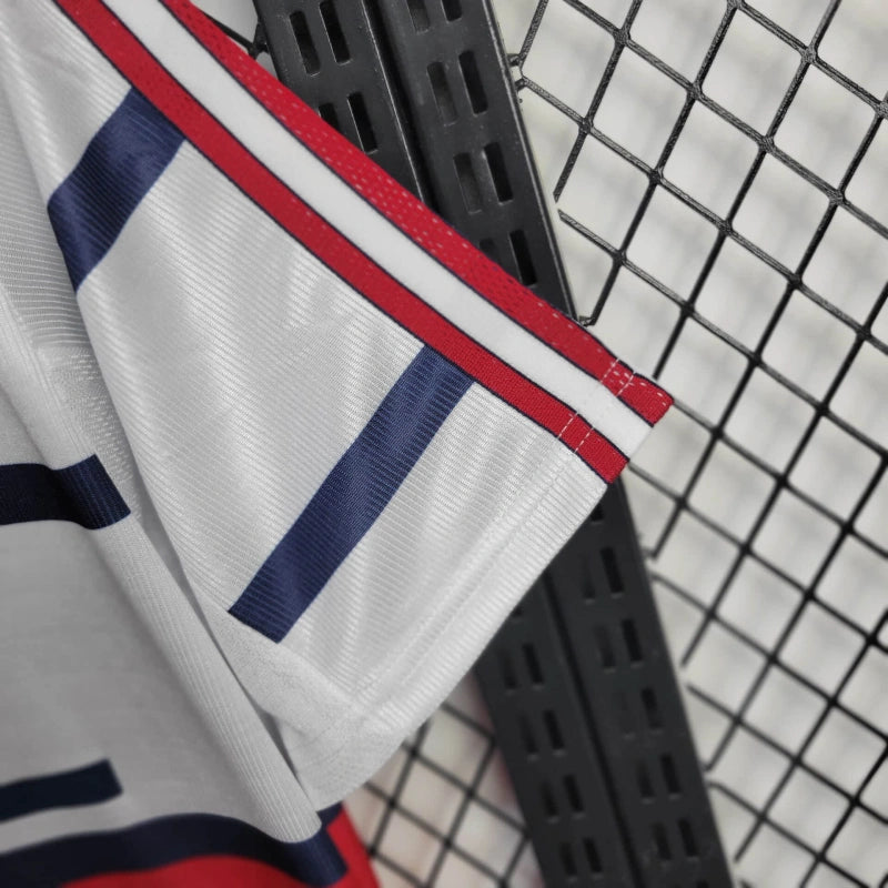 Model z sezóny 1998/99 od Adidasu je jedním z nejznámějších designů Bayernu. Dres s bílo-červenými pruhy, tmavě modrými prvky a legendárním logem „Opel” se stal symbolem týmu z éry Olivera Kahn a Lothara Matthäuse.