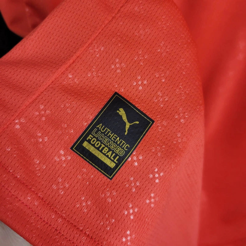 Stylové červené tričko portugalské reprezentace s jemnými zelenými detaily. Ideální pro fanoušky „Seleção“, kteří chtějí podporovat svůj tým s hrdostí a vášní.