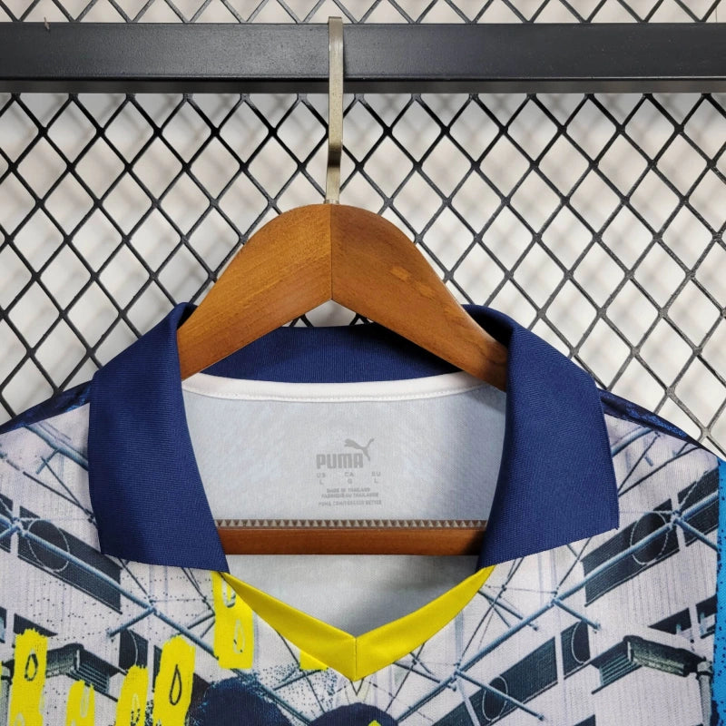 Nowoczesny, artystyczny design inspirowany miejskim stylem Manchesteru. Dynamiczne barwy niebieskiego i żółtego sprawiają, że ta koszulka to coś więcej niż odzież sportowa – to manifest lojalności wobec „The Citizens”.