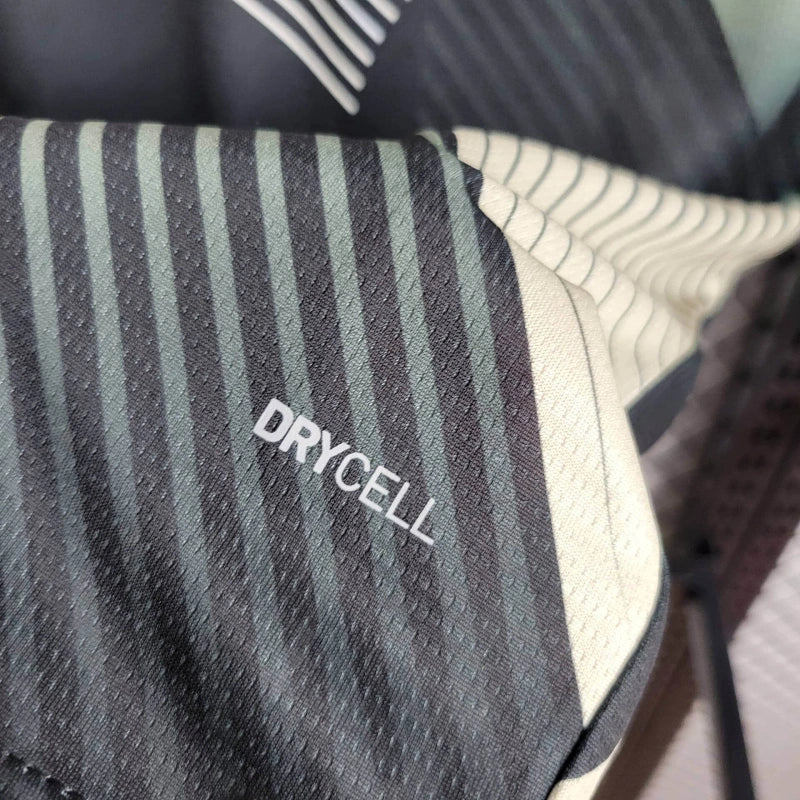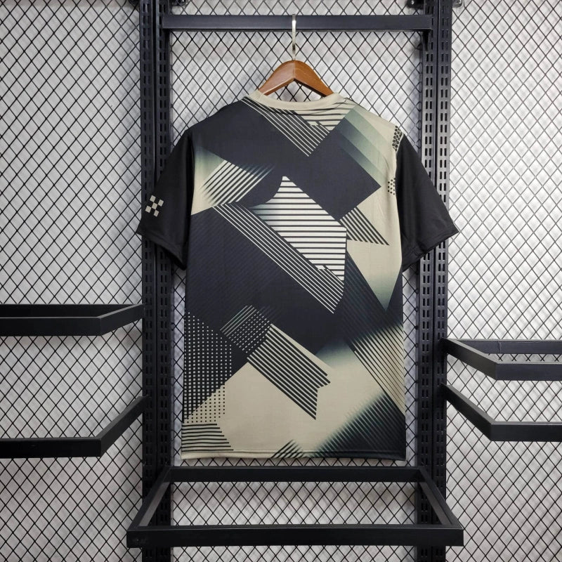 Stylowa koszulka Manchester City 2025 o futurystycznym designie. Geometryczne wzory i stonowana kolorystyka beżu z czernią nadają jej elegancki, minimalistyczny wygląd. Idealny wybór dla fanów, którzy cenią połączenie stylu i funkcjonalności.