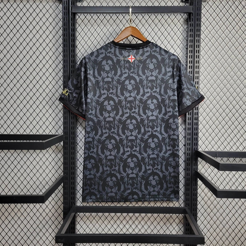 Nové limitované tričko anglické reprezentace pro rok 2025 je stylovou kombinací elegance a odvahy. Tmavá barevná kombinace s jemným heraldickým motivem a zlatými detaily mu dodává královský charakter. Jedná se o výjimečný model pro fanoušky „Synů Albionu“, kteří ocení eleganci a exkluzivitu ve sportovním provedení.