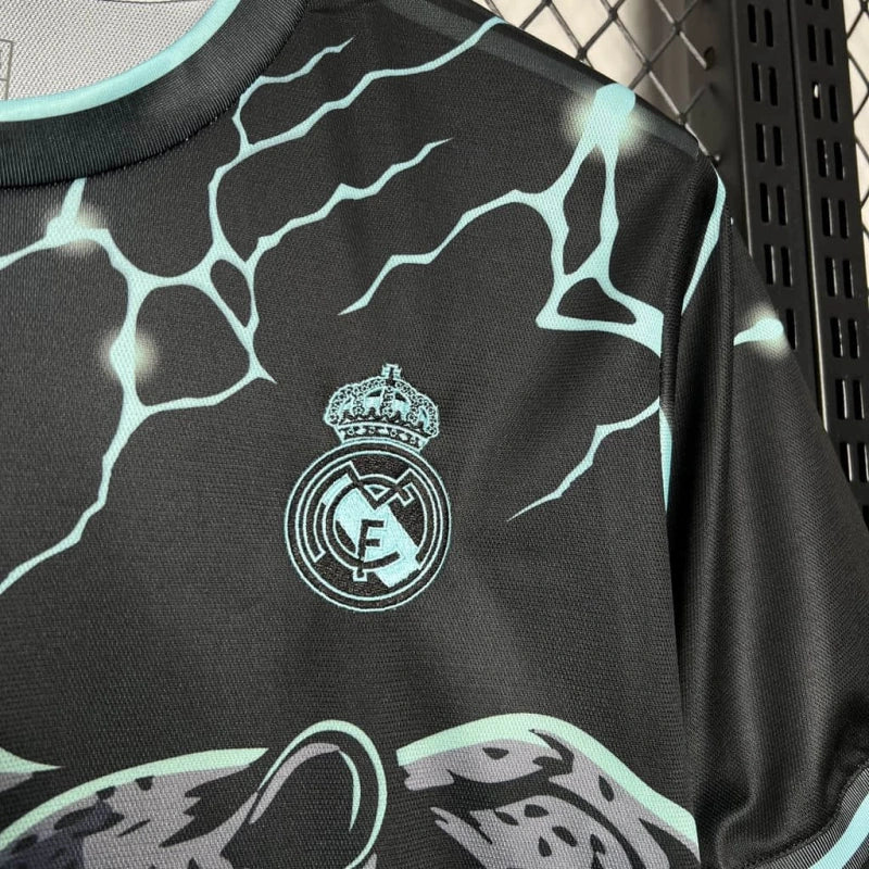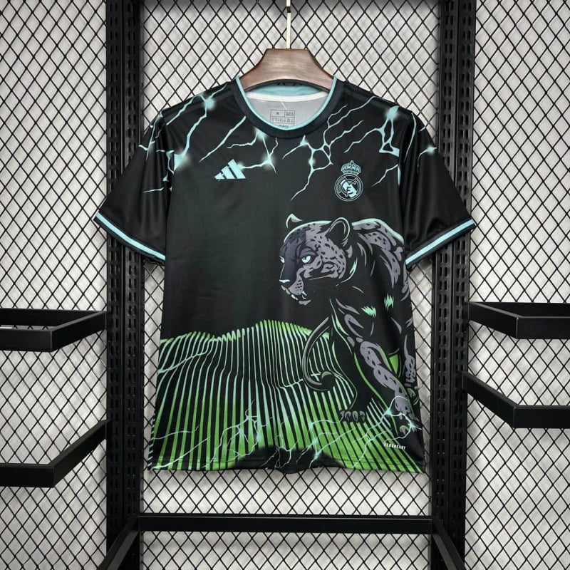 Neobyčejné limitované tričko Real Madrid 2024 s motivem pantera v zelených tónech. Symbol síly, přesnosti a čisté elegance.