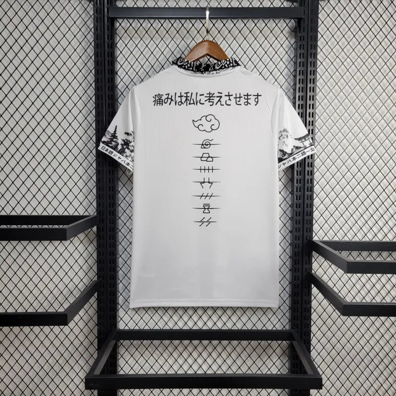 Jedinečné, umělecké tričko inspirované japonskou kulturou a motivy z populární anime série. Na bílém podkladu se objevují detailní ilustrace ve stylu tradiční japonské malby, které celku dodávají jedinečný a mimořádně efektní vzhled. Model se vyznačuje také ozdobným límcem a detaily, které podtrhují charakter limitované edice. Ideální volba pro fanoušky Japonska, anime a jedinečného stylu.