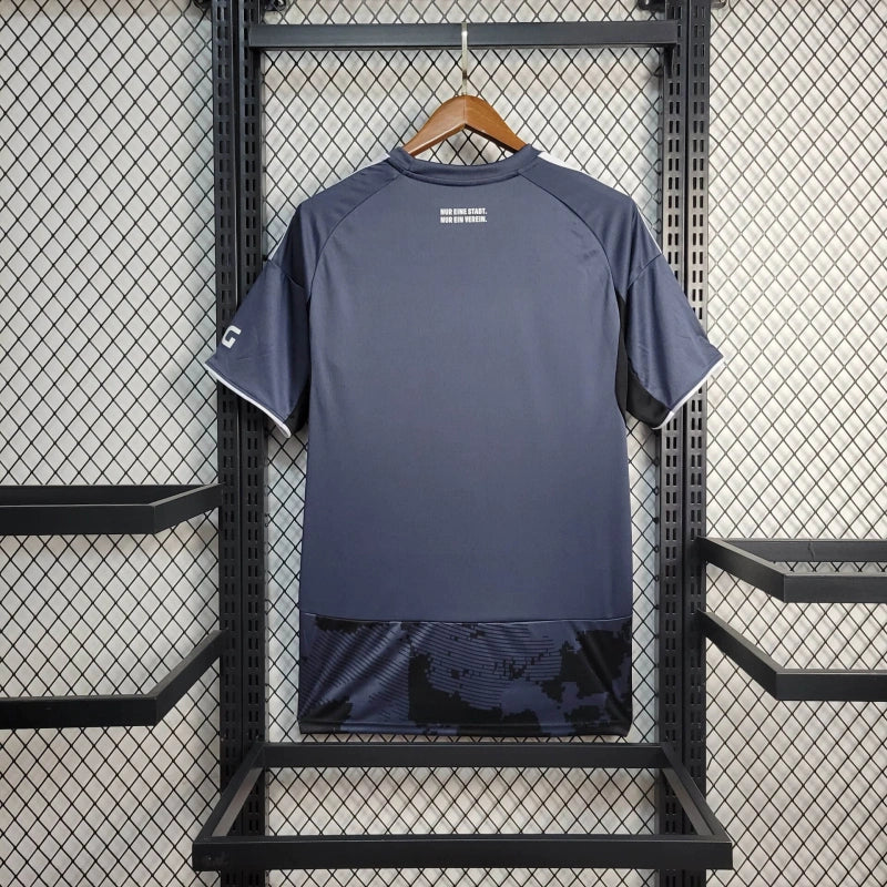 Třetí dres Eintrachtu Frankfurt pro sezónu 2025. Tmavě modrý s jedinečným vzorem a světlými akcenty. Stylový vzhled spojený s pohodlím.