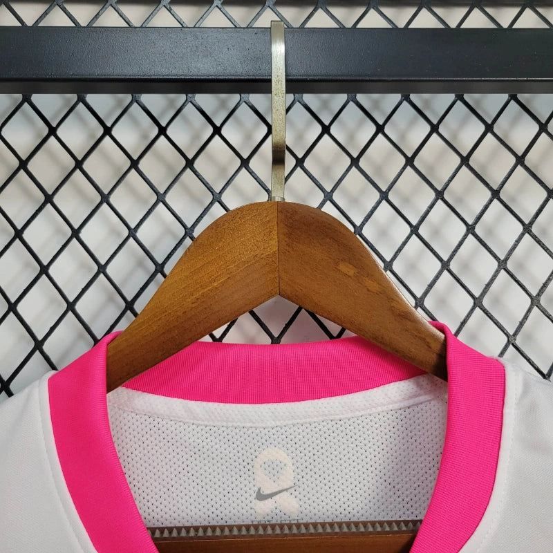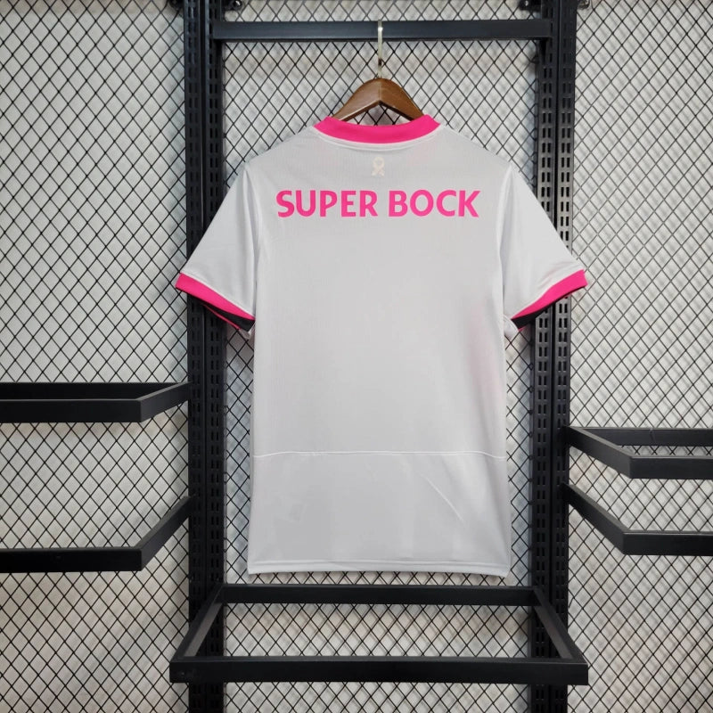 Oficiální venkovní dres Sporting CP pro sezónu 2025. Bílý s růžovými akcenty, moderní a stylový návrh pro fanoušky.