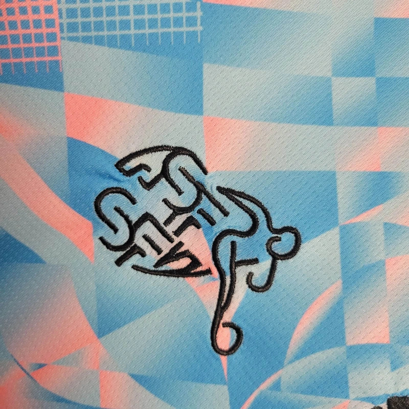 Moderní a odvážné venkovní dresy švýcarské reprezentace pro rok 2026. Kombinace pastelové modré a růžové barvy vytváří jedinečný geometrický vzor, který vyniká na hřišti. Lehký a prodyšný materiál Puma zajišťuje maximální pohodlí při hře i každodenním nošení. Ideální pro fanoušky helvétské přesnosti a jedinečného stylu.