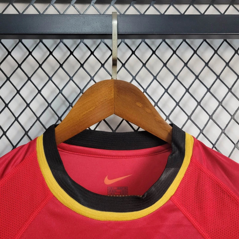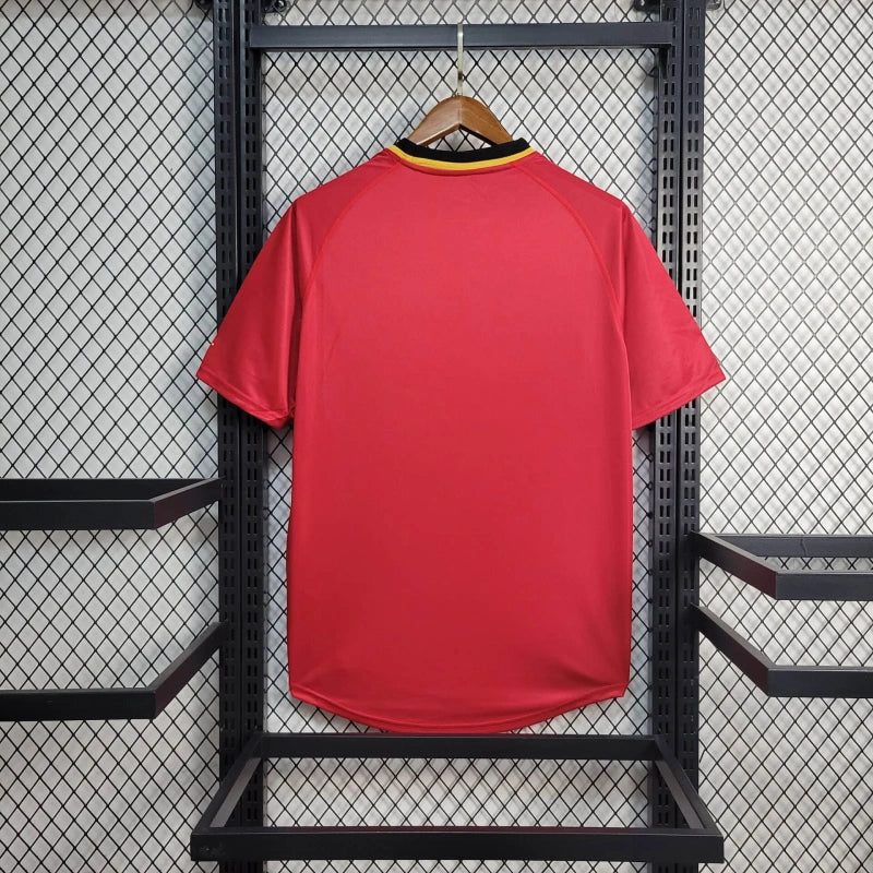 Belgian kotipaita vuodelta 2000. Klassinen punainen väri, keltaiset yksityiskohdat ja legendaarinen vaakuna. Retrotyylinen ja urheilullinen eleganssi – täydellinen valinta Red Devils -joukkueen keräilijöille ja faneille.