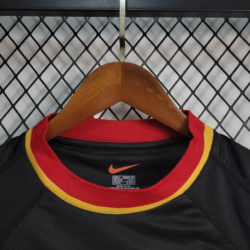 Belgian vuoden 2000 vieraspaita. Musta, keltaisin ja punaisin yksityiskohdin sekä ikoninen Nike-logo. Tyylikäs, ajaton ja persoonallinen – niille, jotka arvostavat jalkapallon klassikoita.