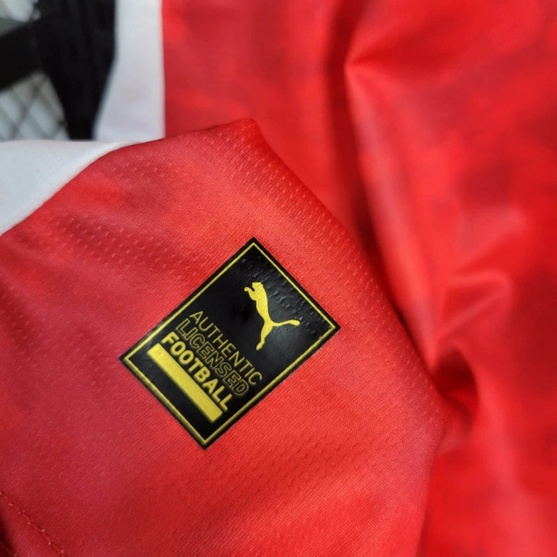 Sporting Bragan kotipaita kaudelle 2025. Klassinen punainen väri, valkoiset hihat ja hienovarainen kuvio kangasta. Tyylikäs, kevyt ja täynnä klubin ylpeyttä – täydellinen valinta "Os Arsenalistas" -fanille.