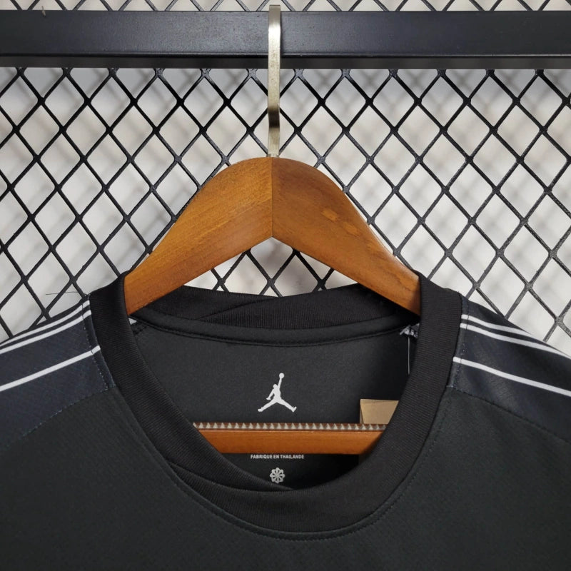 Czarna koszulka bramkarska PSG łączy elegancję z siłą. Wykonana z oddychającego materiału, zapewnia komfort i maksymalną swobodę ruchów. Charakterystyczne srebrne detale i logo Jordan nadają jej wyjątkowy, nowoczesny wygląd.