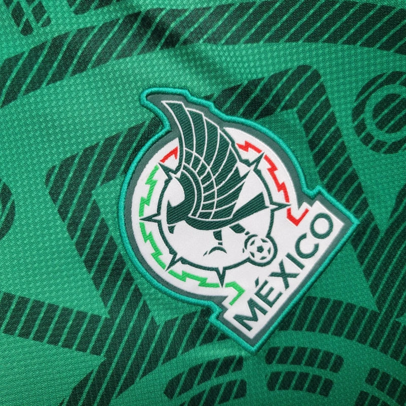 Oficjalna koszulka domowa reprezentacji Meksyku na Mistrzostwa Świata 2026. Zielona z charakterystycznym azteckim wzorem, wykonana z materiału wysokiej jakości.