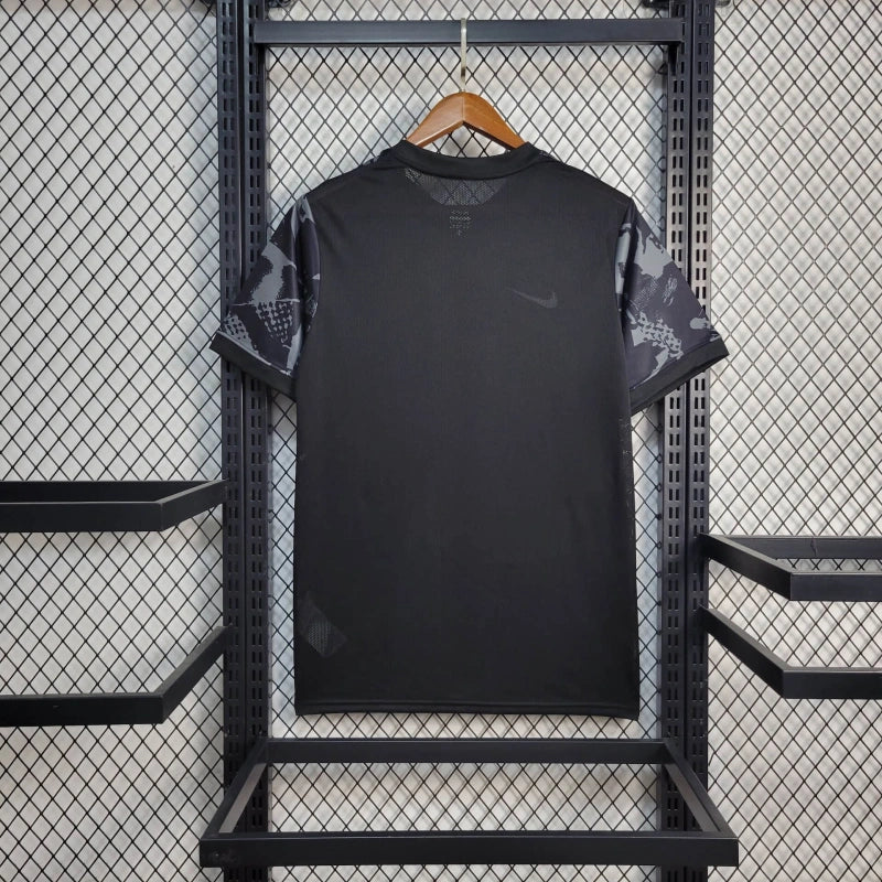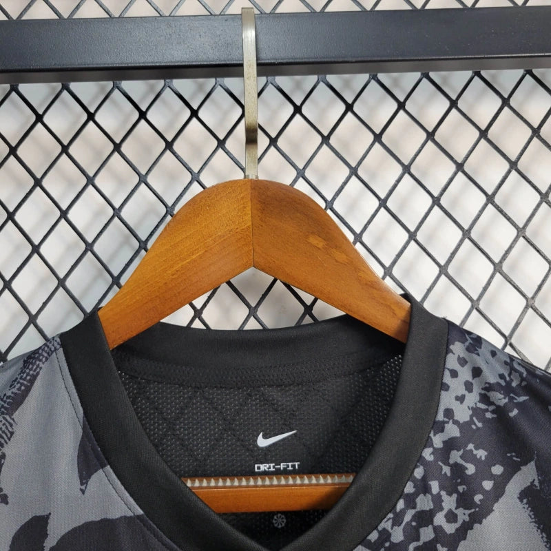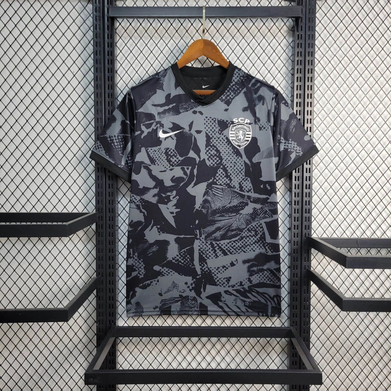 Koszulka treningowa Sportingu CP na rok 2025 w czarno-szarym, kamuflażowym wzorze. Lekka i przewiewna, stworzona z myślą o treningach i aktywnym stylu życia. Idealna propozycja dla fanek portugalskiego klubu.