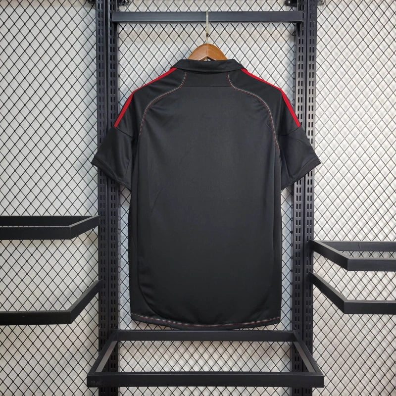 Klasyczna czarna koszulka AC Milan 2012 to symbol elegancji i historii włoskiego giganta. Wykonana przez Adidas, z legendarnym logotypem Fly Emirates na froncie oraz trójkolorową naszywką symbolizującą włoskie barwy narodowe.