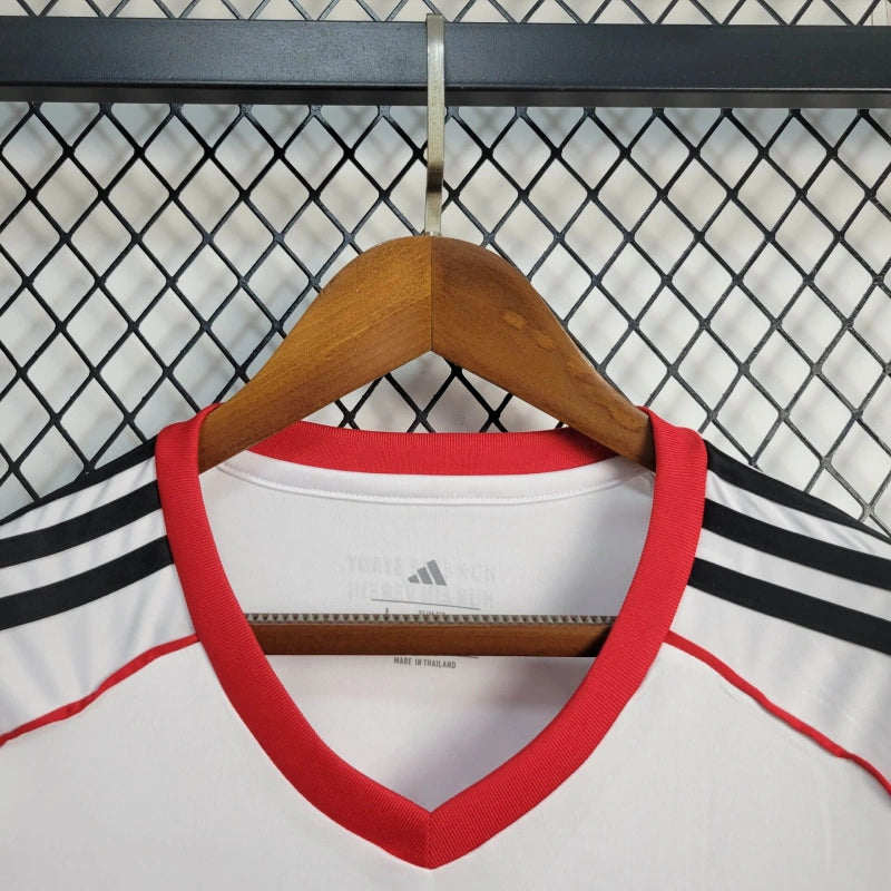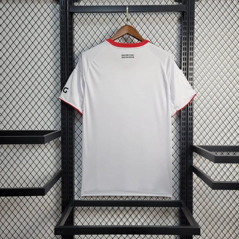 Oficjalna koszulka wyjazdowa Eintrachtu Frankfurt na sezon 2025. Biała z czarnymi detalami i czerwonym kołnierzykiem. Lekka i oddychająca, idealna na mecze i codzienne noszenie.