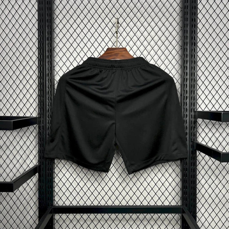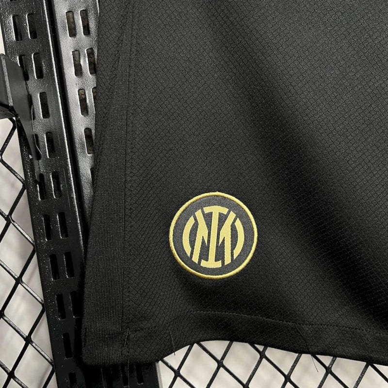 Czarne spodenki z dynamicznym niebieskim wzorem po jednej stronie i złotym herbem Interu. Logo Nike umieszczone z przodu podkreśla sportowy charakter. To nowoczesny i odważny projekt, idealny dla fanów Nerazzurrich.