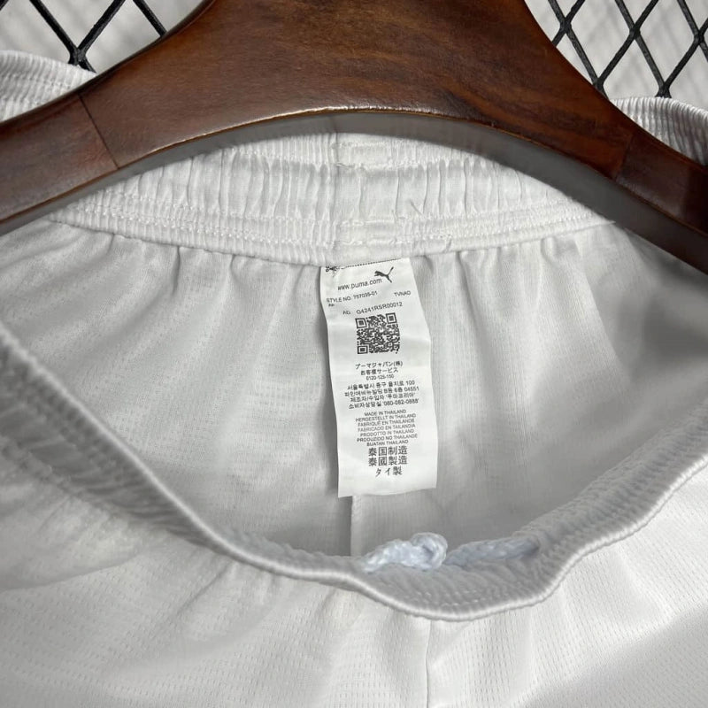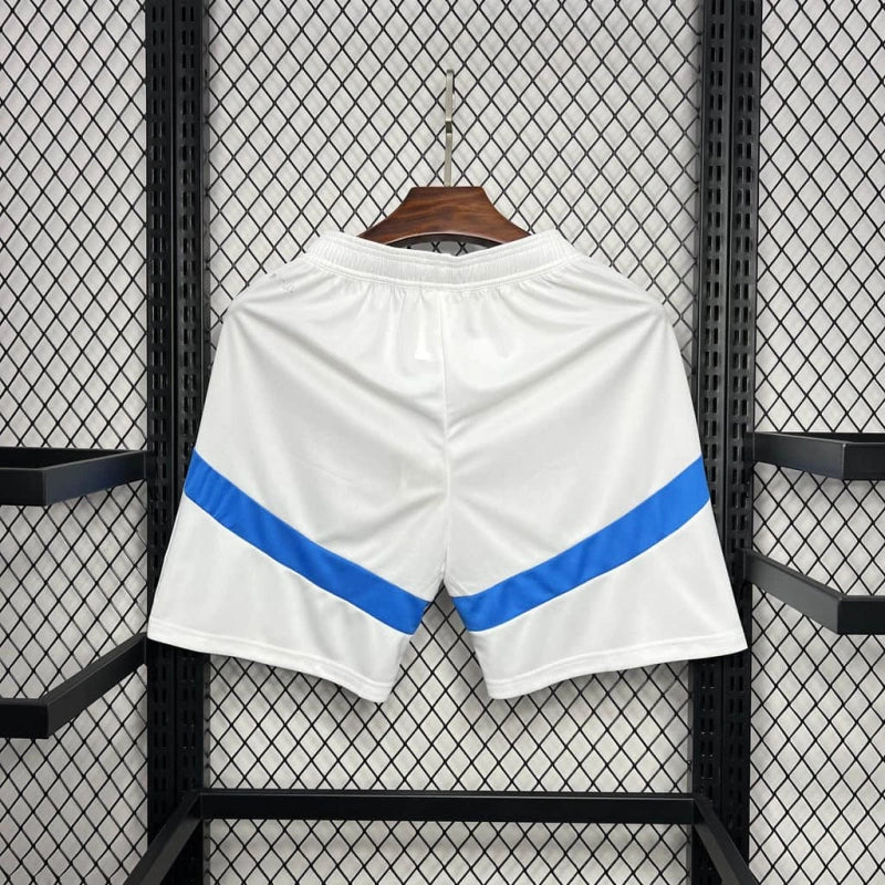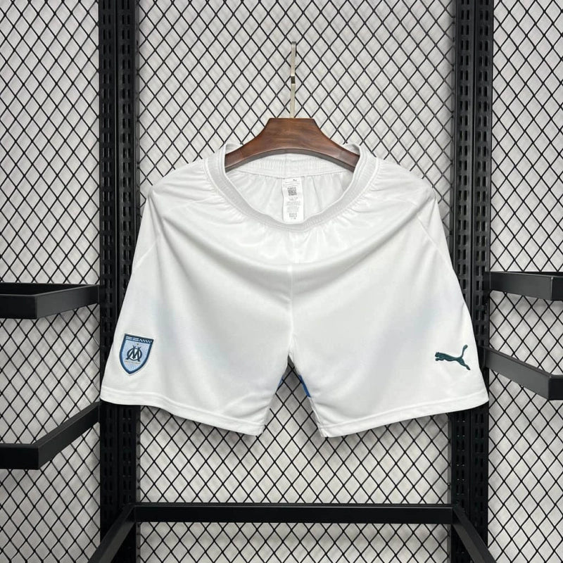 Klasyczne białe spodenki domowe Olympique Marsylia na sezon 2024. Wykonane z wysokiej jakości tkaniny technicznej zapewniającej komfort i swobodę ruchu. Minimalistyczny design z niebieskimi akcentami.