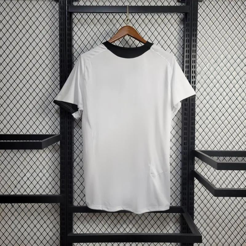 Camisa alternativa branca com a icônica faixa azul e preta e logotipo da Pirelli. O design minimalista enfatiza a elegância do Inter e os elementos característicos da época conferem-lhe uma verdadeira atmosfera retro.