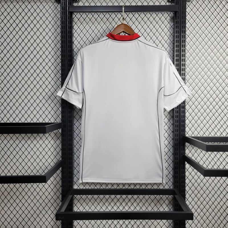Lendária camisola branca do Manchester United da época 2003/2004, patrocinada pela Vodafone. O design clássico da Nike com gola preta e delicadas linhas vermelhas é um símbolo da era Sir Alex Ferguson. Perfeito para todos os fãs dos Red Devils.