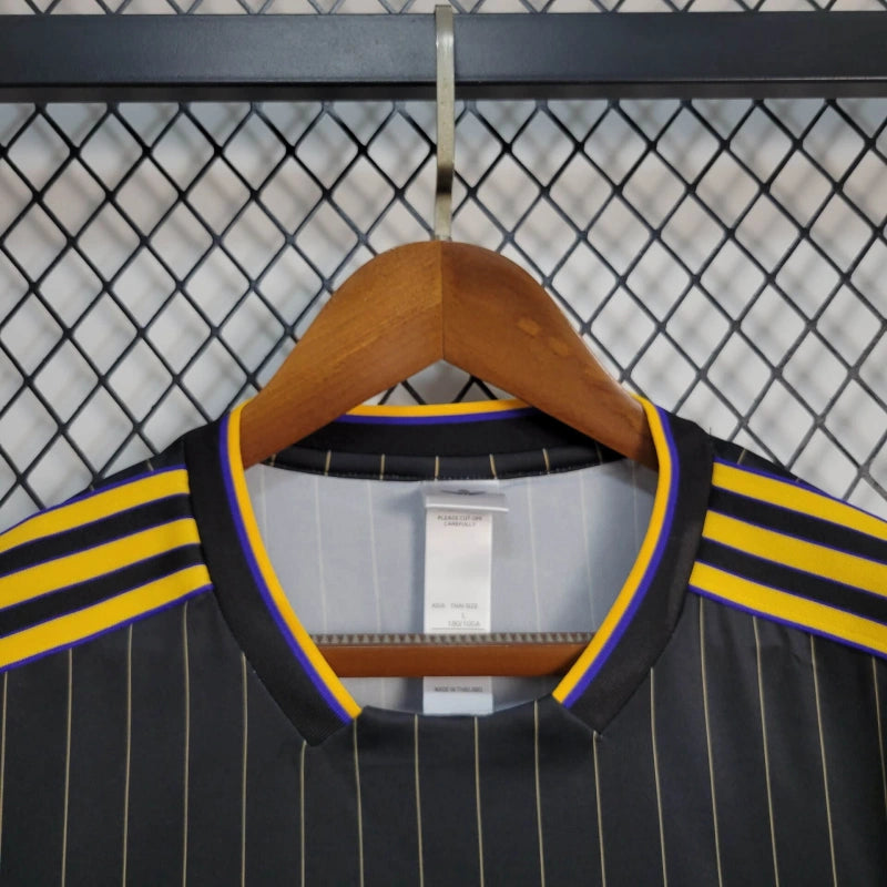 T-shirt do Manchester United de edição limitada inspirada no estilo retro. Listrado cinza escuro com detalhes amarelos, da Adidas Originals. Uma proposta elegante e única para os fãs.
